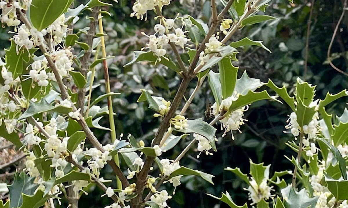 境内には、ヒイラギの花が咲いています。